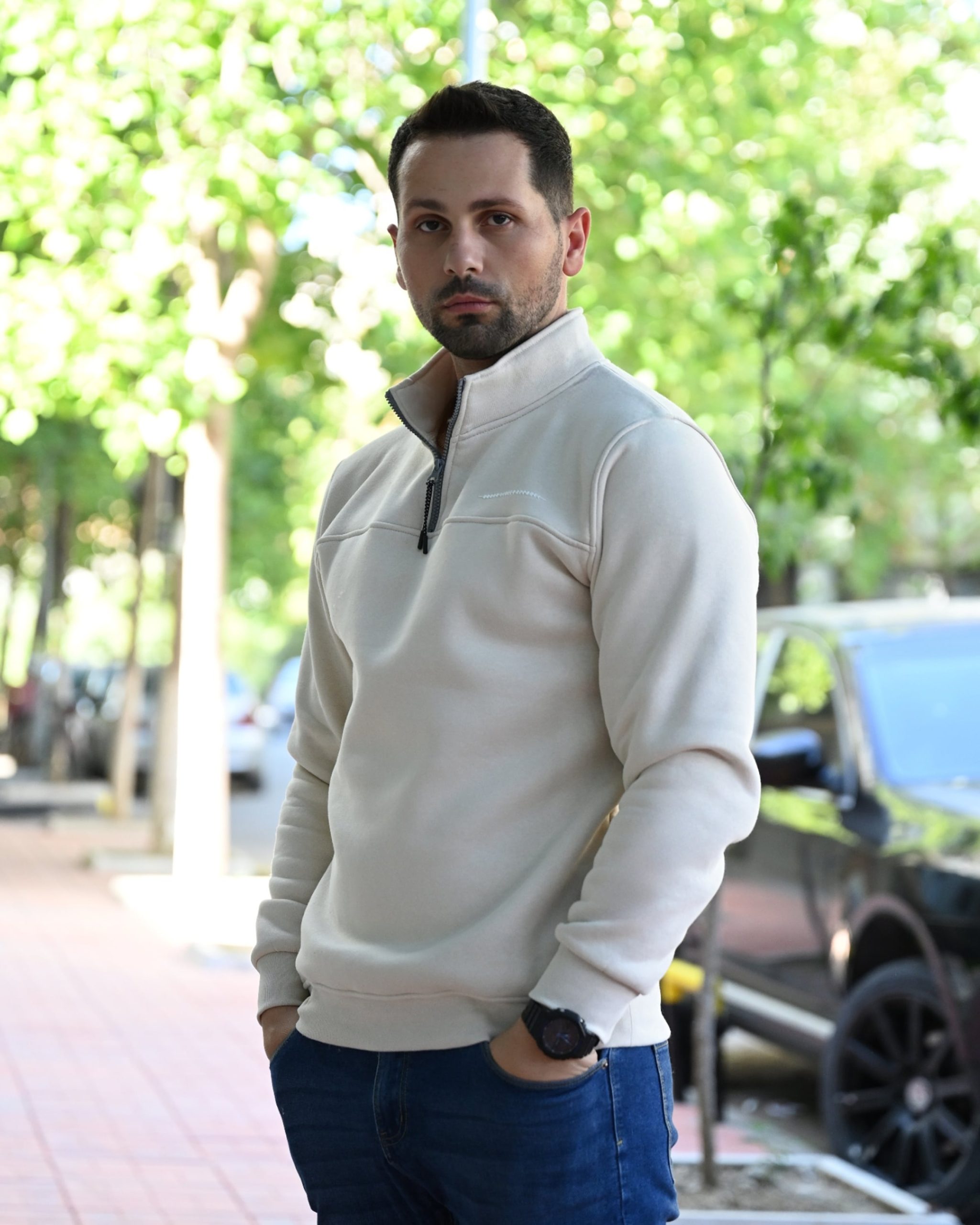 Kjo pulovër me jakë dhe zinxhir është një zgjedhje praktike dhe elegante për ditët më të ftohta. E punuar nga material 100% pambuk cilësor, ofron ngrohtësi dhe rehati maksimale, ndërsa zinxhiri dhe jaka i japin stil modern dhe funksional çdo pamjeje. Ideale për veshje të përditshme